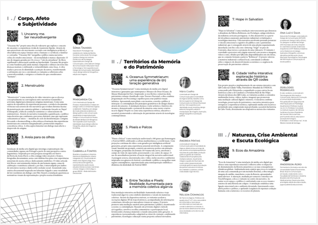 O prefixo “./”, oriundo dos sistemas Unix/Linux, refere-se ao diretório atual — o ponto de partida, o lugar onde o utilizador se encontra no momento. Na exposição, essa notação sublinha o “aqui e agora” da experiência: um acesso direto aos projetos finalizados, que carregam consigo a memória do percurso e a energia das ligações que os tornaram possíveis.